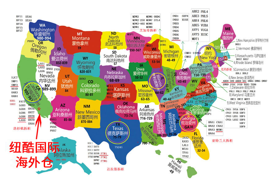 (PS:每個莊家的劃分可能有所區別,其實美東、美中、美西的劃分是為了方便頭程運費的區間劃分,比如4開頭的郵編,空派部分分到美東去了)