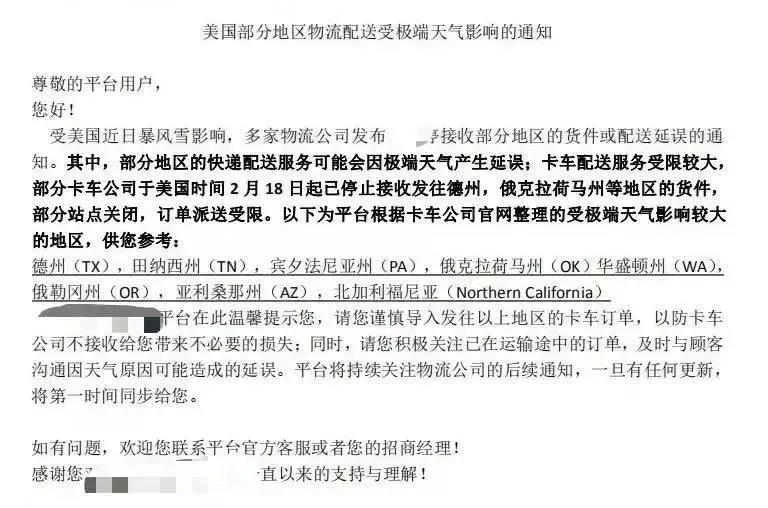 2021年新年剛過,美國那邊暴風雪襲來不少地區停水停電,以美國德州地區最為嚴重。還給交通帶來了非常糟糕的情況,這些大雪封路的地區無論是FBA頭程尾端部分還是FBA部分都會有1-3周的延遲。
