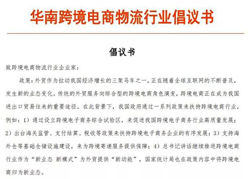 大會聯(lián)合發(fā)起單位企業(yè)代表宣讀《華南跨境電商物流行業(yè)倡議書》并集體傳閱簽字。該《倡議書》是跨境電商物流行業(yè)以誠信交易為核心的自律性行業(yè)公約。從行業(yè)競爭、公共管理、公平交易、合同履行、服務(wù)質(zhì)量、糾紛解決、警示懲罰等方面對跨境電商物流交易各方進(jìn)行了限制和約束,同時也保證了相關(guān)方的合法利益。
