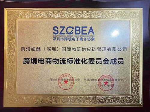 ▲紐酷國際“跨境電商物流標(biāo)準(zhǔn)化委員會成員”