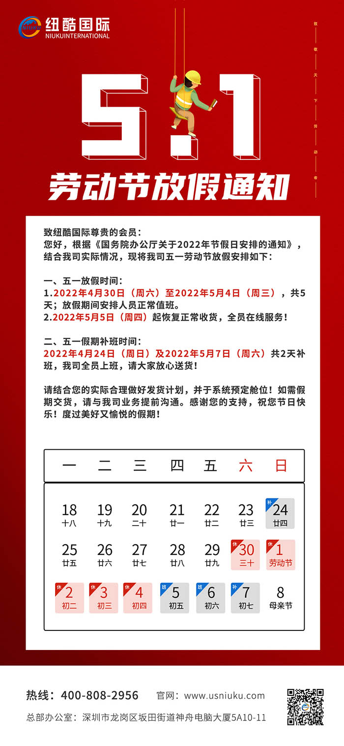 2022年4月24日(周日)及2022年5月7日(周六)共2天補班,我司全員上班,請大家放心送貨!